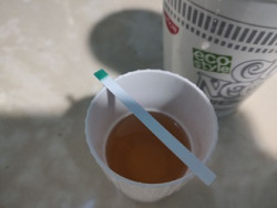 右は朝マックのセットに付いていたオレンジジュース(果汁100%ではない)ですが、二酸化塩素が0ppmなので使えません